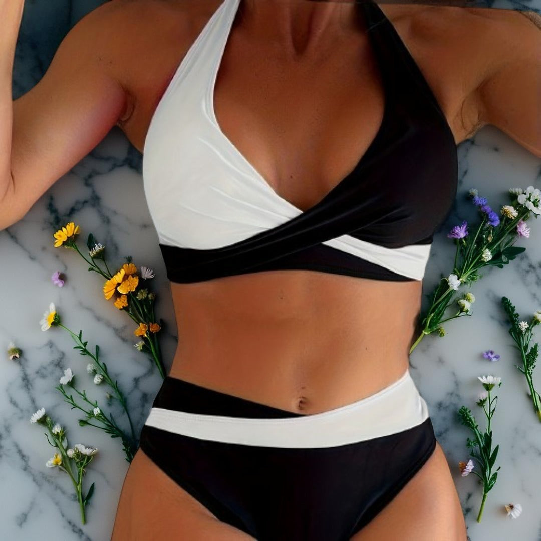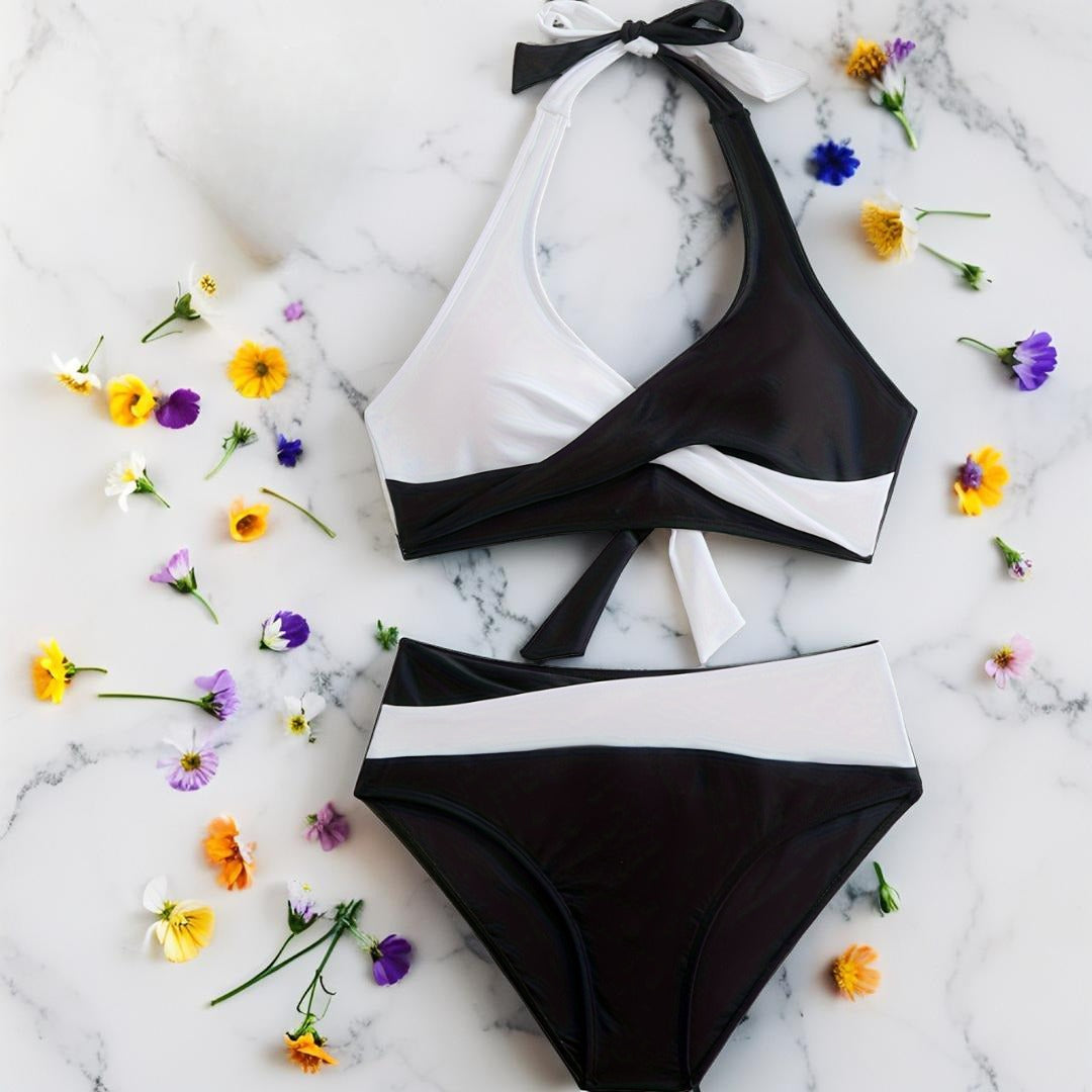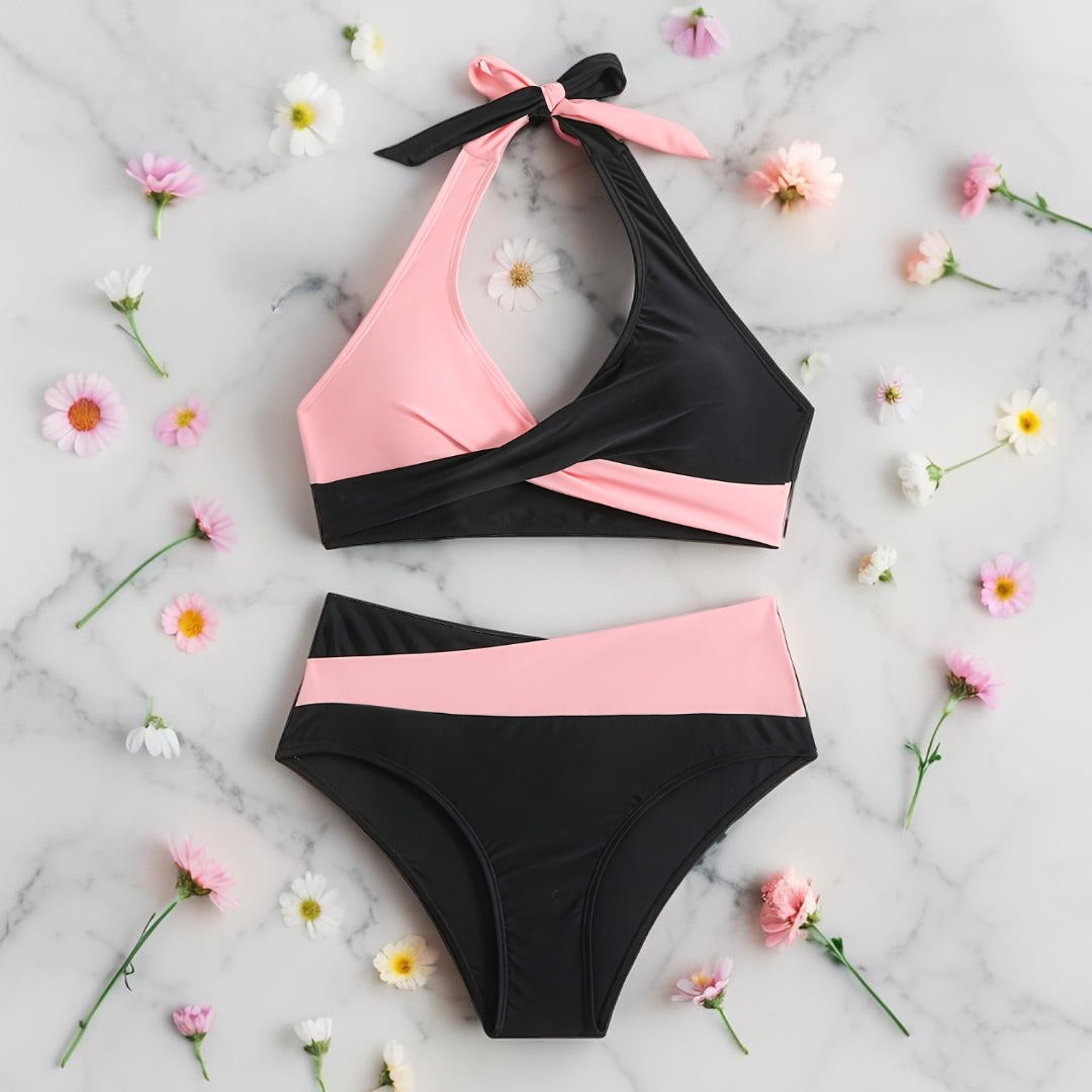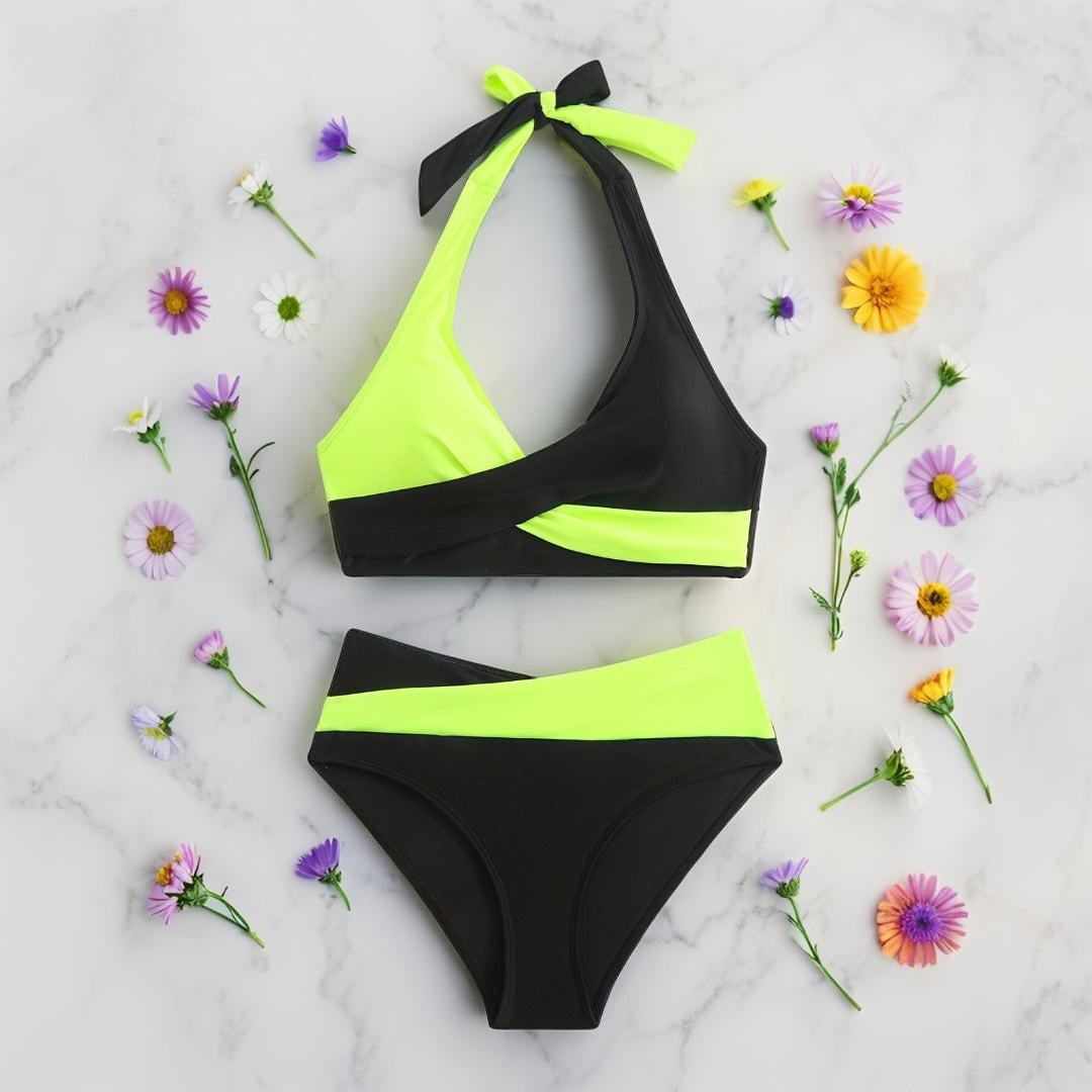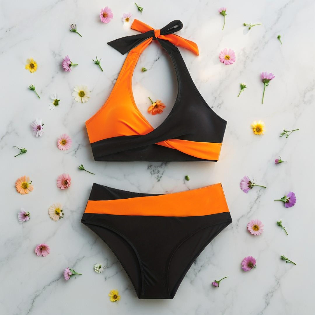 Sunkiss – Maillot de bain 2 pièces pour femme | Couleur vibrante, haut à nouer, détails croisés – Idéal plage & vacances
